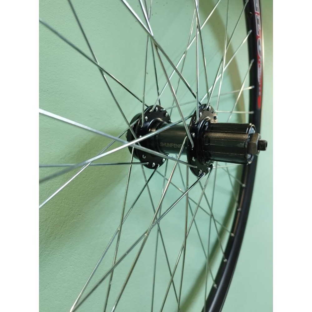 Колесо 27,5" заднее алюм. двойн. обод, спортивная втулка под кассету с пром. подшипником, под эксцентрик, диск 6 отв., цвет черный