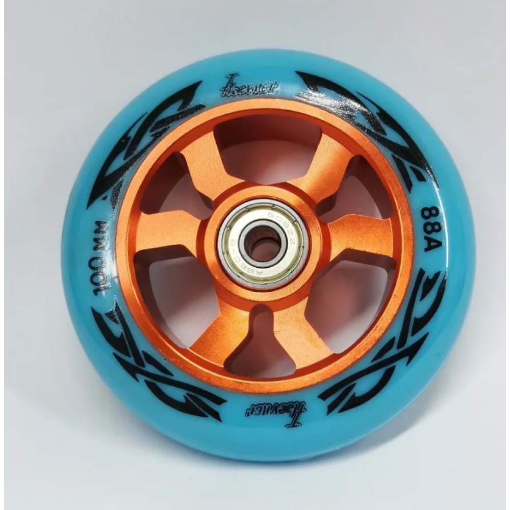 Колесо 100 мм, алюминий. ABEC-9, голубой/оранжевый