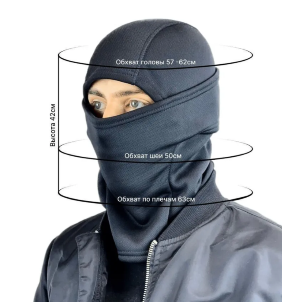 Балаклава приятна на ощупь, в меру тянется, прекрасно выводит влагу. Самое главное, держит тепло и защищает от пронизывающего ветра и осадков, служит как защитная мужская маска. Значительно превосходит вязаные балаклавы по ветрозащите.
