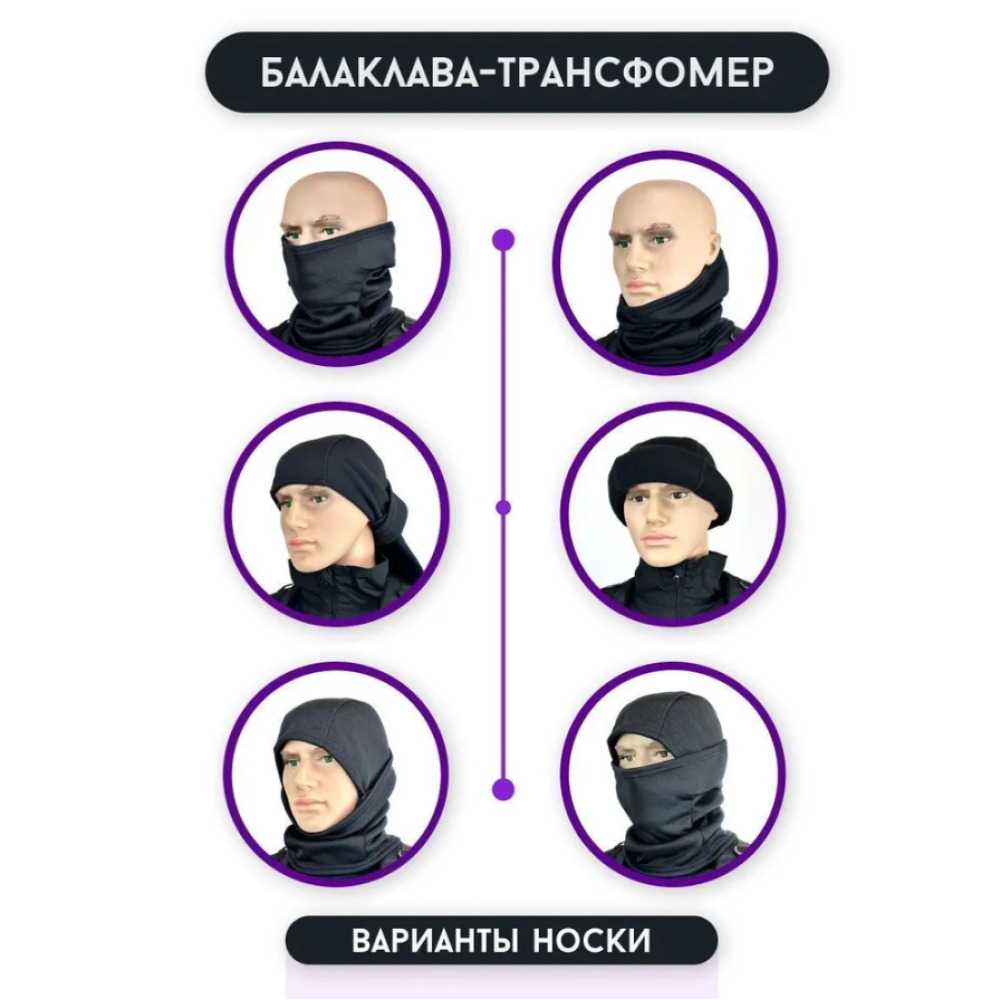 Головной убор трансформер 6 в 1 можно носить как: бафф; снуд; шапку; маску; подшлемник; шарф; бандану. Практичный подарок любимому мужчине, отцу, брату, сыну.