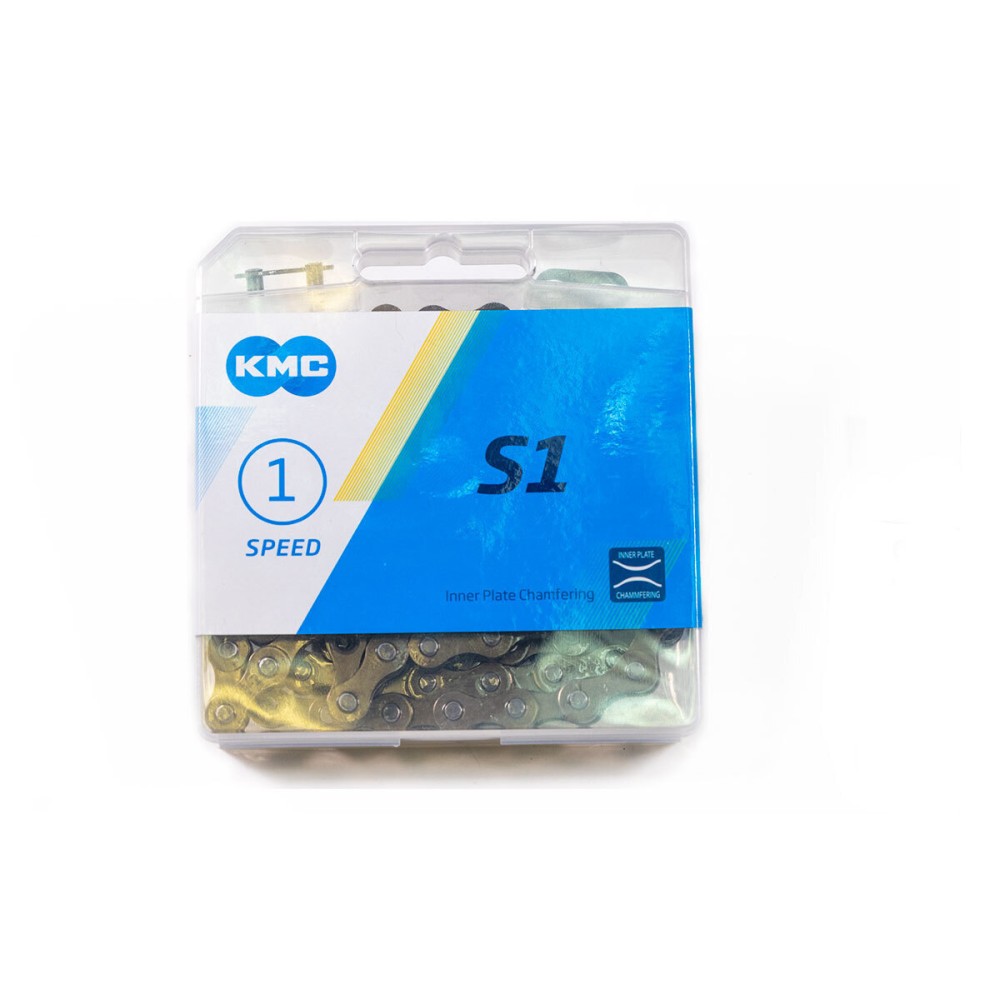Цепь 1 ск. KMC S1, 1/2"х1/8", 112 звеньев, пин 8.6мм, с замком, коричневая