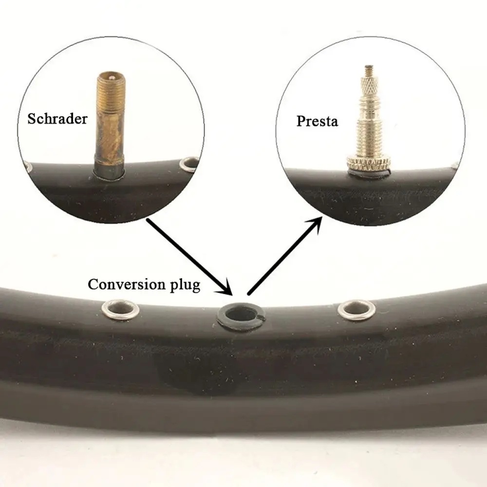 Применение: вставьте втулку в отверстие обода и установите камеру/ниппель Presta — ремонт и апгрейд без замены обода.