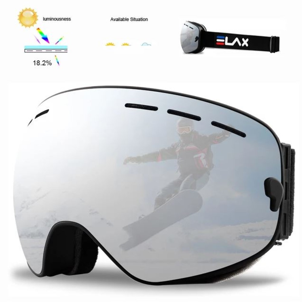 Маска горнолыжная ELAX двухслойная, черная, зеркальная линза