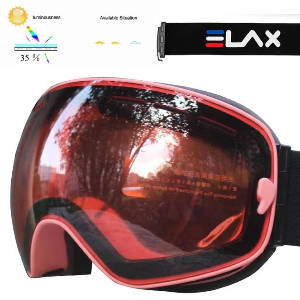 Маска горнолыжная ELAX двухслойная, розовая, розовая линза