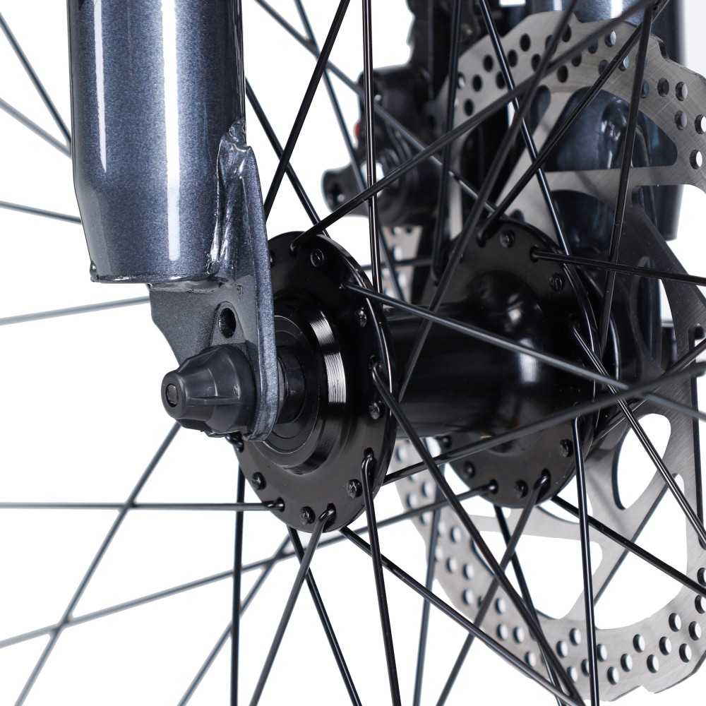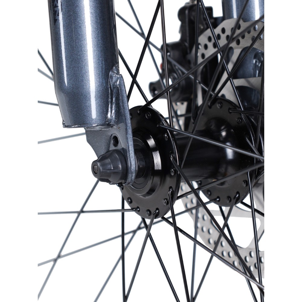 Амортизационная вилка смягчает удары от неровностей дороги, дисковые тормоза обеспечивают надежное торможение в любых условиях, втулки на промышленных подшипниках гарантируют идеальное качение, а широкий руль RISER BAR и спортивное седло обеспечивают драйвовую посадку и удовольствие от управления.