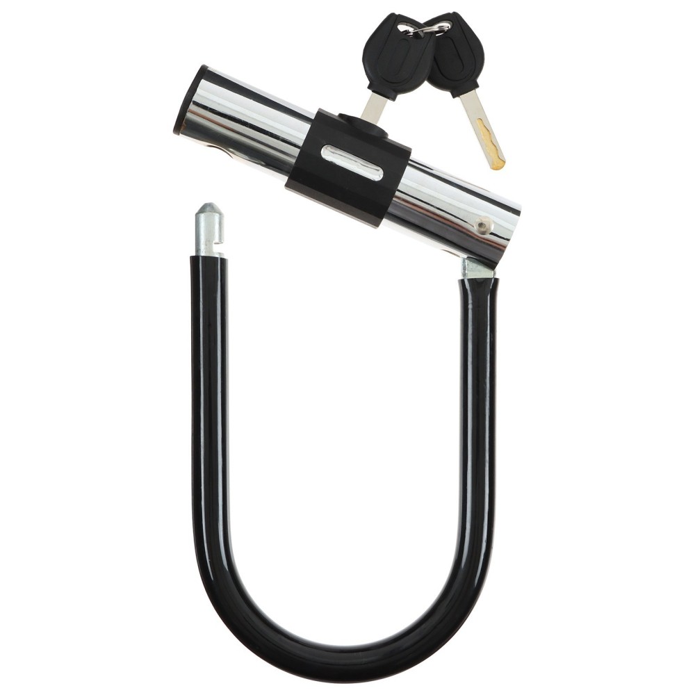 Замок — незаменимый аксессуар для велосипеда. Изделие препятствует угону двухколёсного транспорта. Резиновый слой предотвращает появление коррозии на замке. Замок крепится на раму и закрывается ключом.