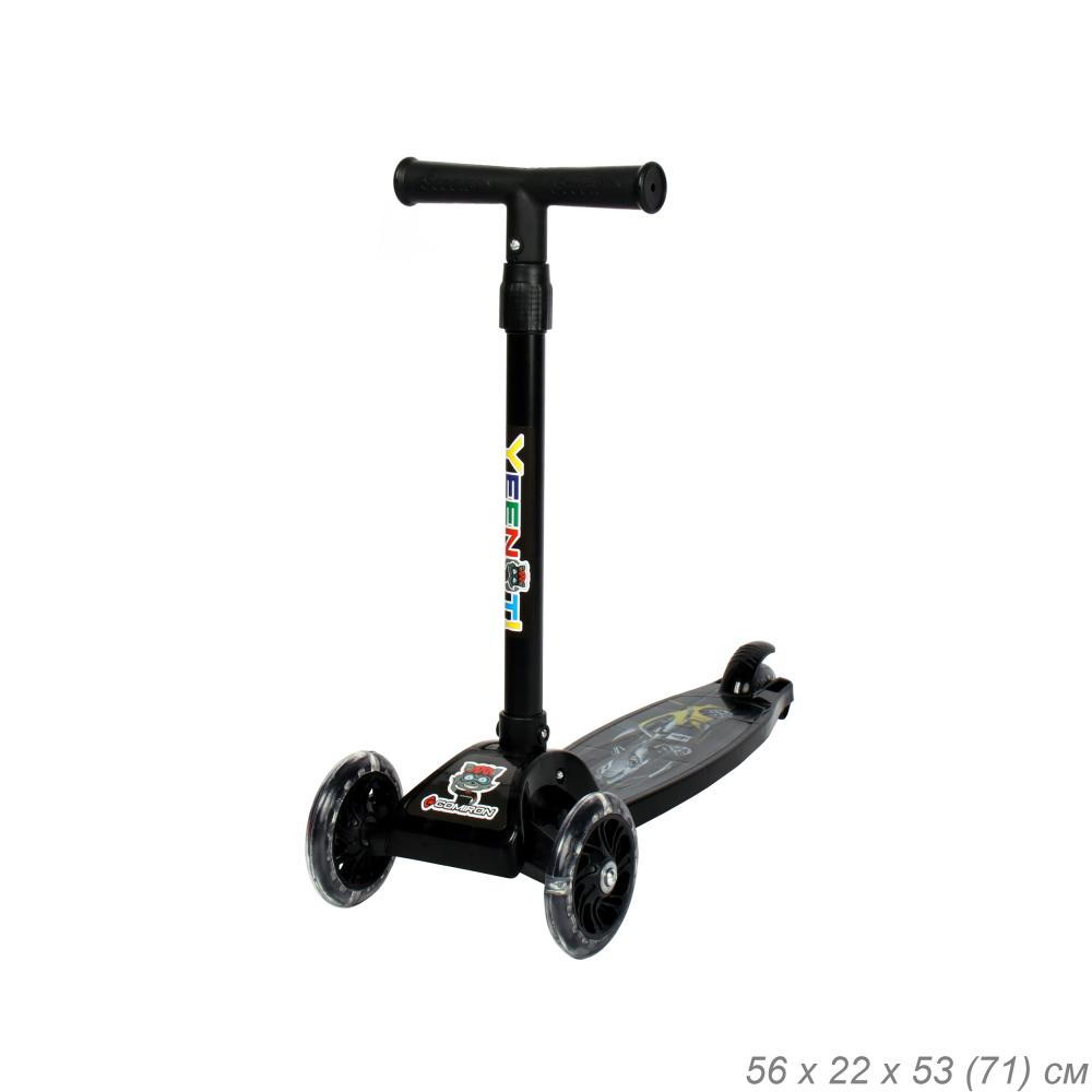 Самокат 3-х колесный Yeenot GT105-18, светящиеся колёса 110мм, черный