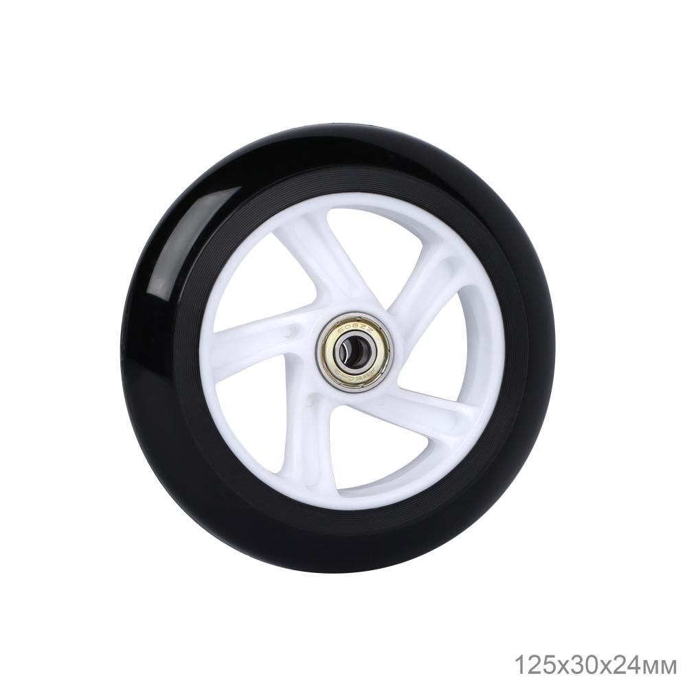 Колесо 125/30/24 мм с 2 подшипниками ABEC-7/SK-125-W для самоката, PU, обод пластиковый, черное/белое