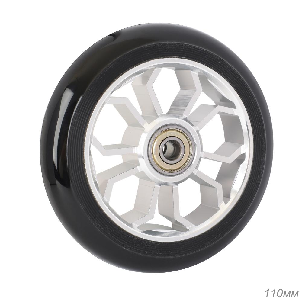 Колесо 110 мм с подшипниками ABEC-9 PU, обод алюминевый, серебро