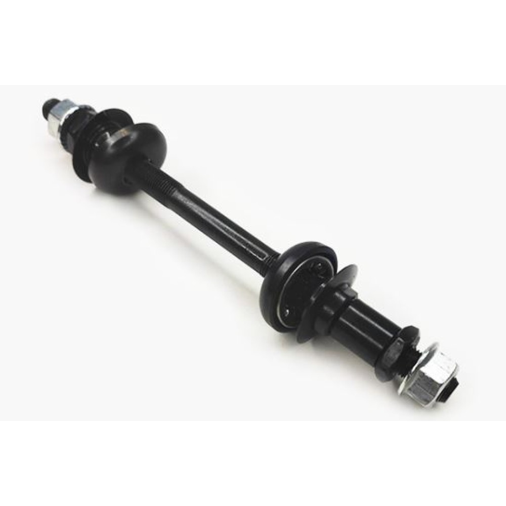 Ось задняя 170 мм "МТВ" в сборе с подшипниками и чашками, размер 3/8*170, черная, конуса с пыльниками, черная