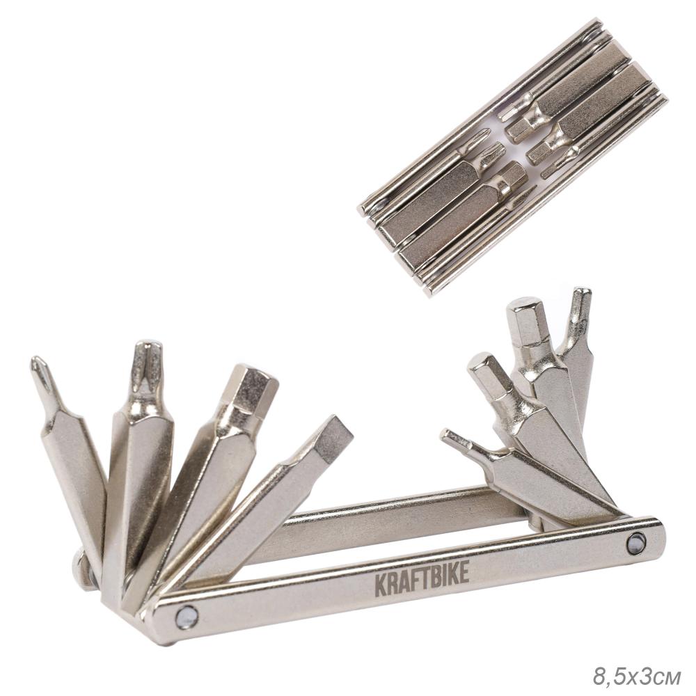 Мультитул складной KRAFTBIKE 8 в1 конструкц хром-ванадиевая легированная сталь 40CRV(40X) ШЛИЦ SL5/КРЕСТ/PH4/HEX M2 M3 M4 M5 M6/TORX25