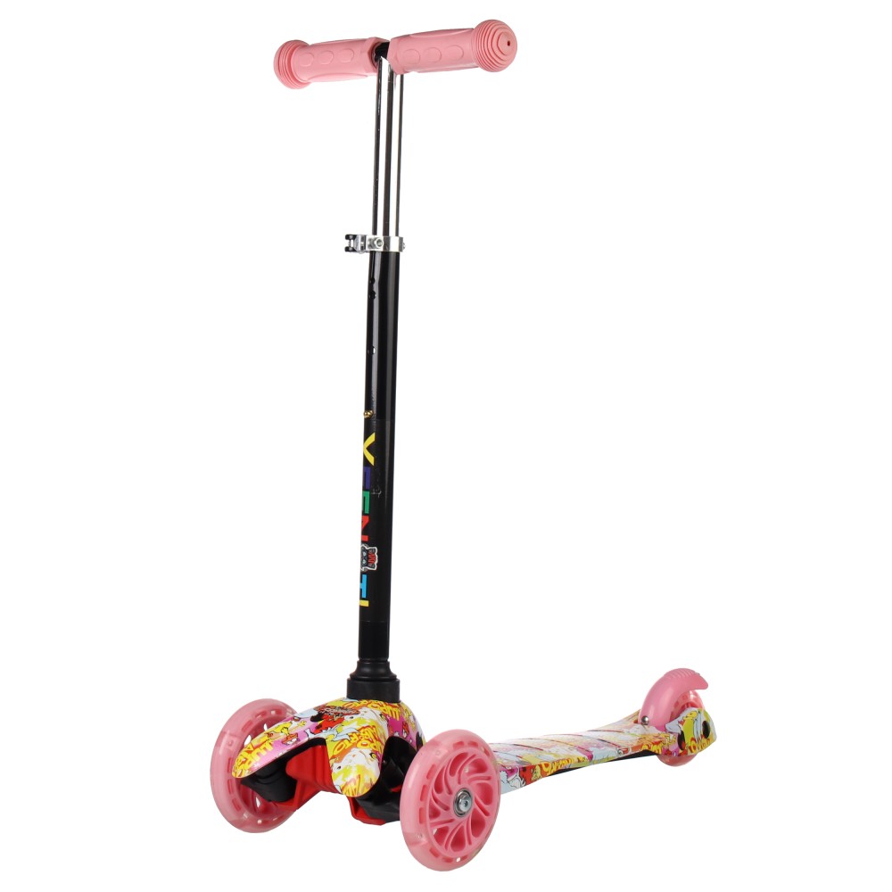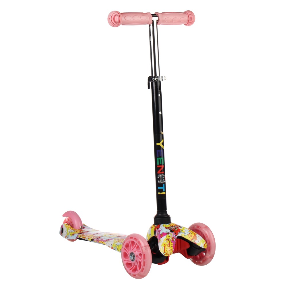 Самокат трехколесный Yeenot GT4105P11, свет. колёса PU 110мм, (зверушки), розовый/желтый