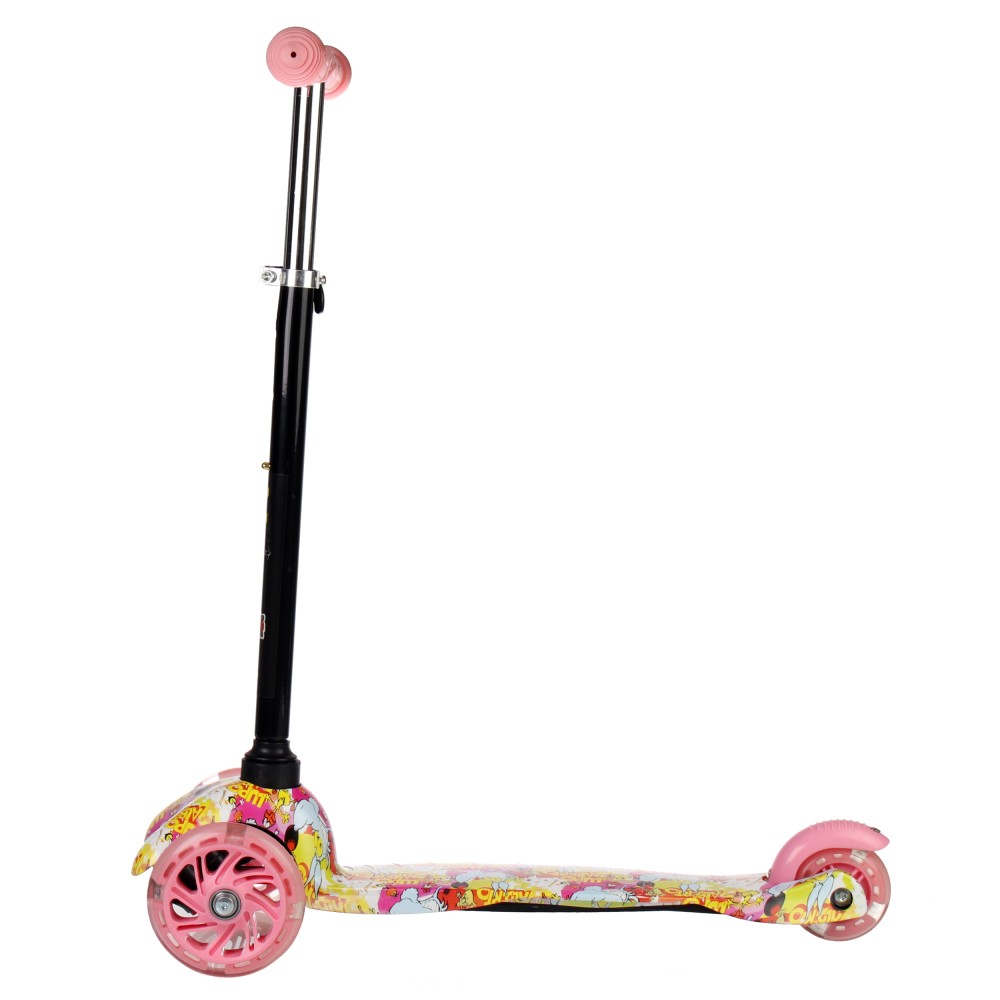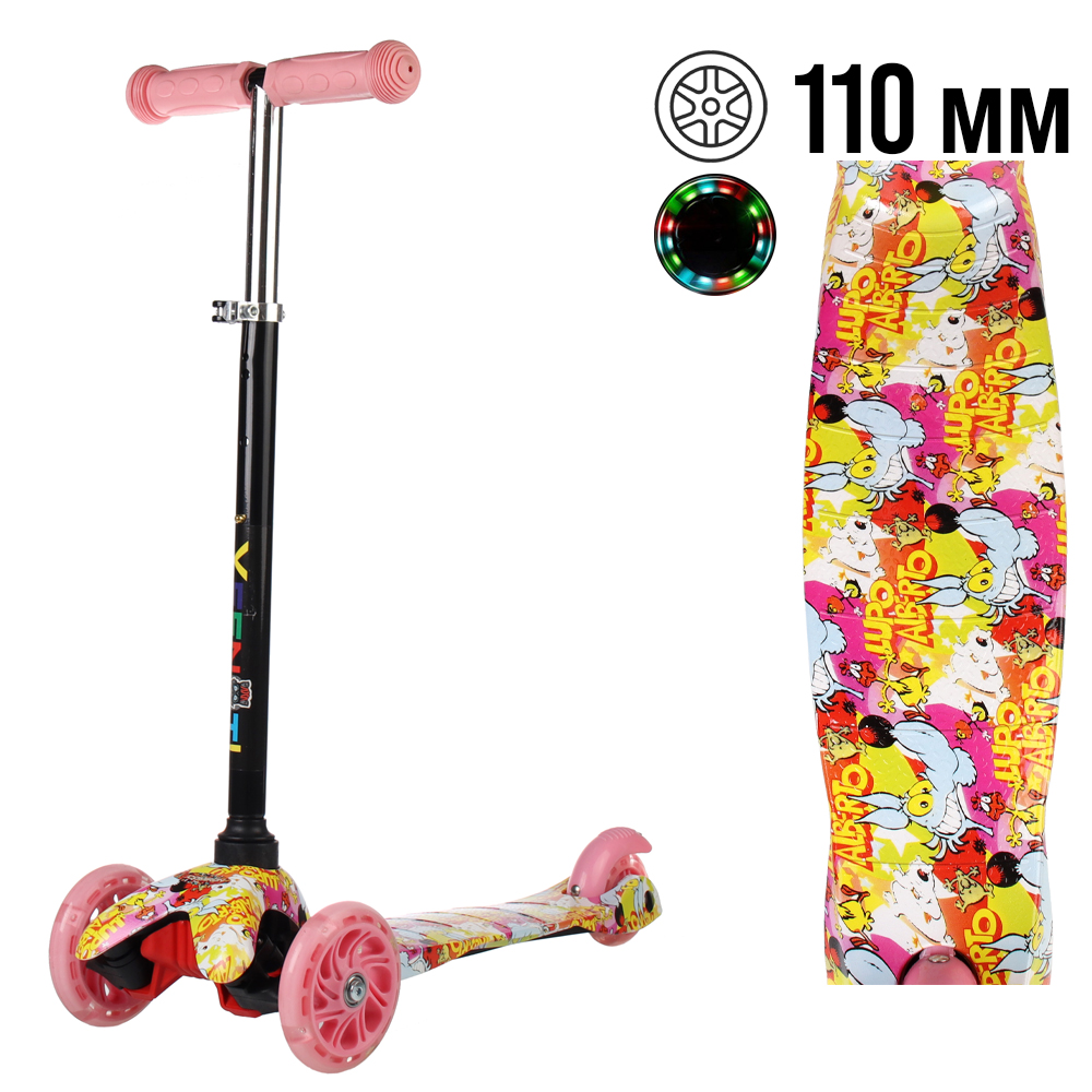 Самокат трехколесный Yeenot GT4105P11, нагрузка до 30кг, вес 1,8кг, светящиеся колёса PU 110мм, Зверушки