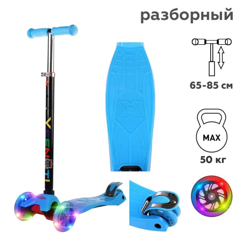 Самокат трехколесный Yeenot Kids GT4105, свет. колёса PU 110мм ABEC7, ярко-голубой