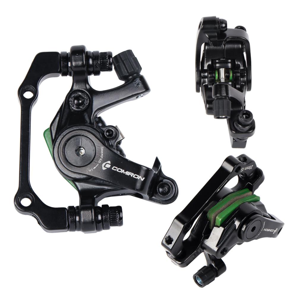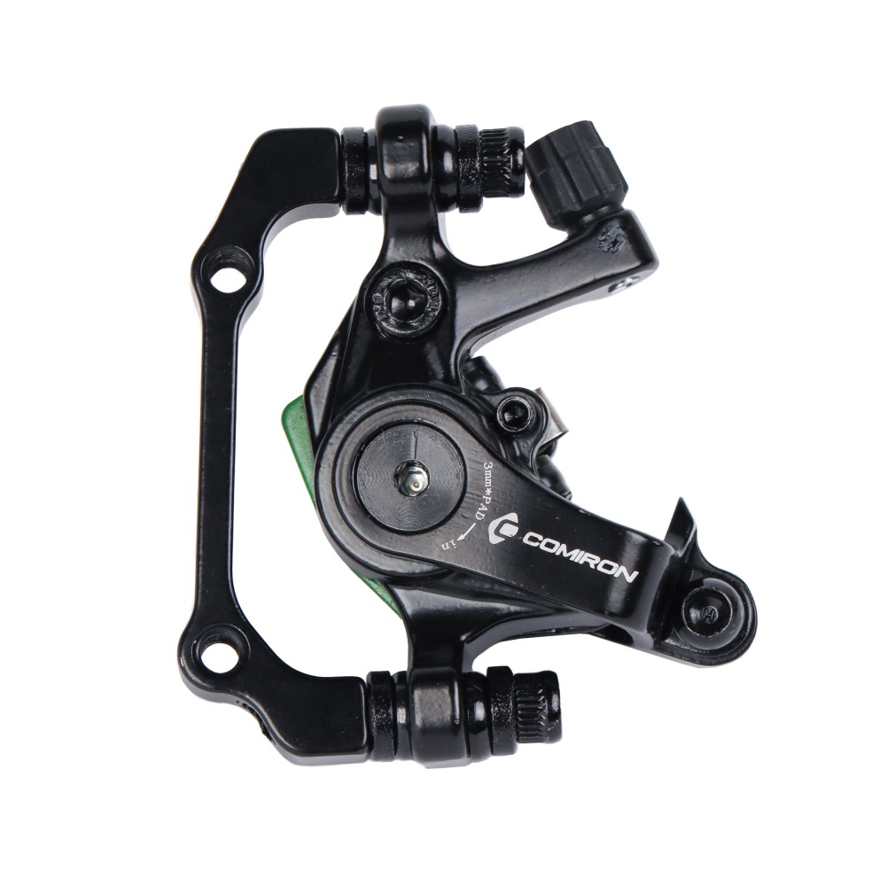 Тормоз дисковый механический COMIRON S8 для дисков 120-203мм с адаптером F180/R160mm, зеленые колодки