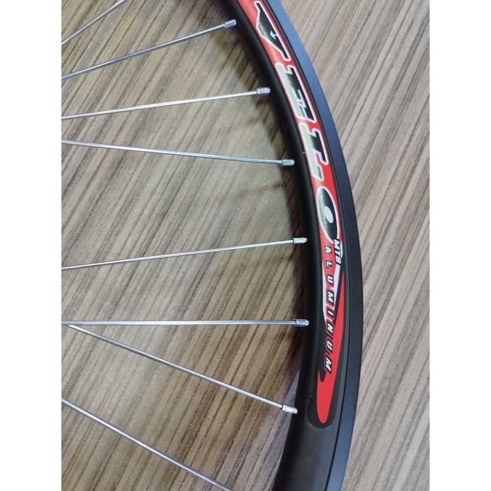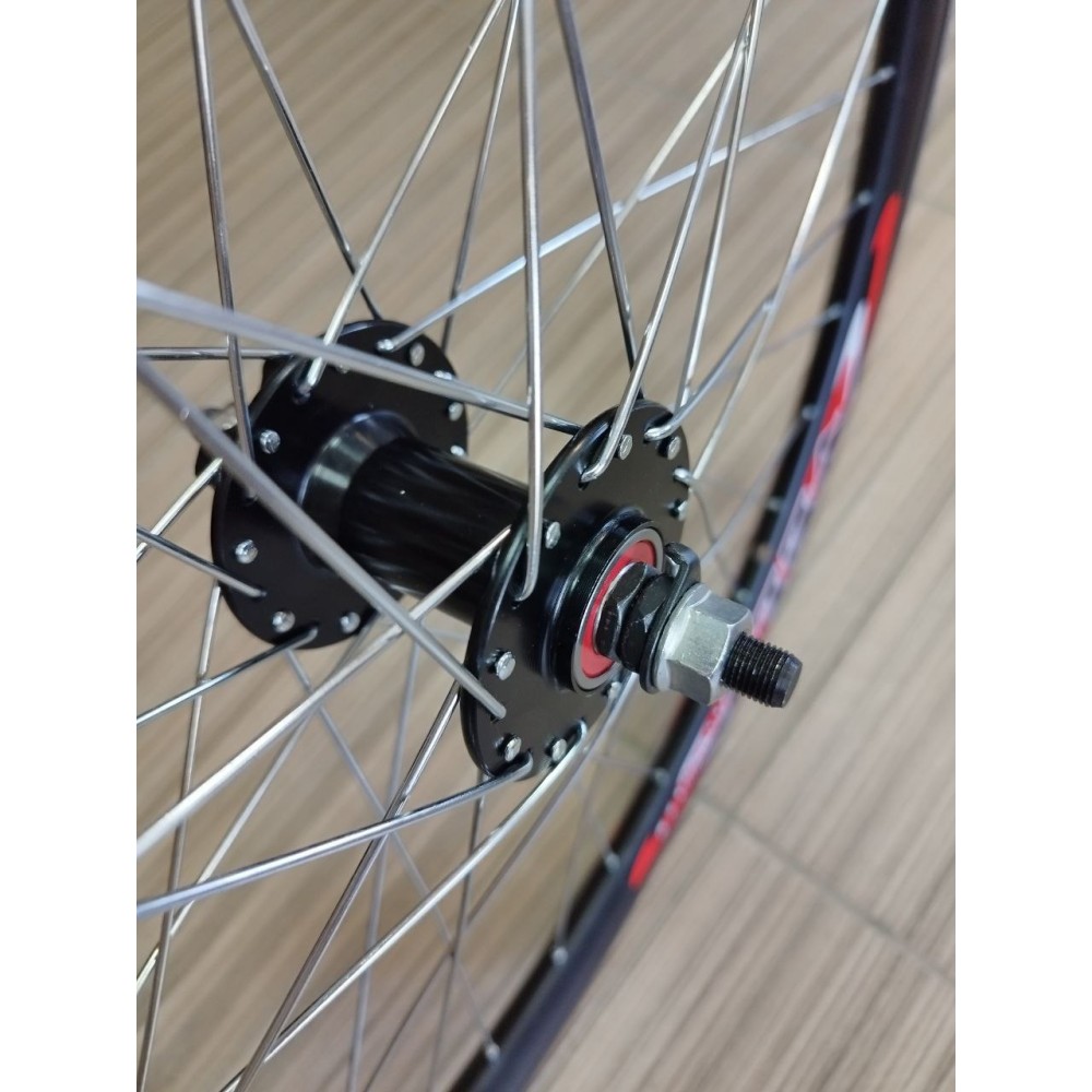 Колесо 26" переднее алюм. двойн. обод, алюм. втулка с пром. подшипниками, гайки, под диск 6 отв., цвет черный (лого VELO)